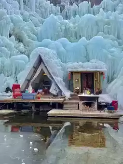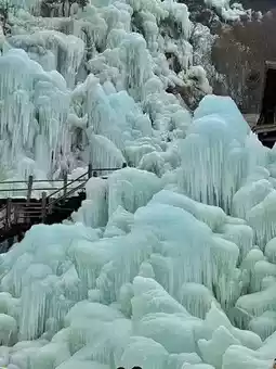 The icefall is very large, with a Frozen atmosphere, and the scenery opposite gives it a Nordic Xinjiang feel. The ice road is very slippery, so you must wear crampons, which you can buy on site or bring your own
