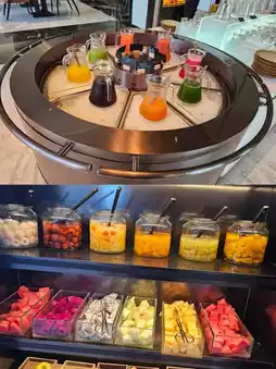 Yuan Su All Day Dining: Located on the 33rd floor, it serves buffet breakfast, dinner, and all-day dining. The breakfast is very rich, including various Chinese and Western dishes, Chinese noodles, Western breakfast, fruit snacks, etc., with a high aesthetic level.