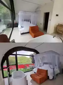 🛏【Facilities】: The room is furnished with solid wood furniture, full of texture. Equipped with York central air conditioning, you can enjoy a comfortable temperature no matter what season you stay in. 🌡 Hot and cold water circulation system, water of suitable temperature is always available. Full wireless network coverage allows you to stay online at all times 📶 There are also six exquisite toiletries and care sets to take care of your daily travel life. There are many room types to choose from, including comfortable king-size rooms, elegant twin rooms, happy parent-child rooms, etc., which can satisfy you whether you are traveling alone, as a couple or as a family. In addition, there is a small leisure garden and swings. You can relax here when you are tired of shopping. It is very comfortable.