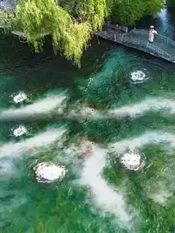 The stepping stones near Yefang Restaurant are a popular photo spot, and the circular Jinjing Spring offers mesmerizing light and shadow play.