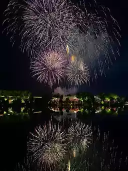 Fireworks bloom in the night sky, filling the moment with emotional value.