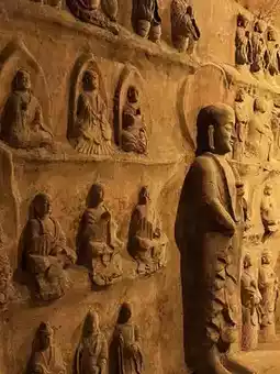 Entering the caves, you are greeted by the sculptural art of the Tang and Song dynasties. In the Buddha niches, bodhisattvas lower their eyes, and flying apsaras’ robes flutter. The most striking are the vivid Arhat reliefs on the right wall, some joyful, some angry, some thoughtful, some enlightened—each expression frozen for a millennium. Standing before these ancient artifacts, one almost hears the clinking sounds of the craftsmen chiseling the caves long ago.