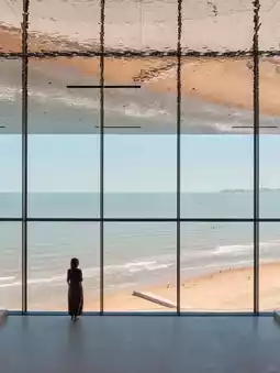 This is a beautiful, modern check-in spot, perfect for a relaxing day in Yantai! 🩵