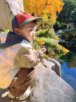 The child in the photo is exploring the autumn scenery at Baotu Spring Park (Address: No. 1 Baotu Spring South Road, Lixia District), with golden fallen leaves, clear spring water, and innocent smiles—truly Jinan’s most vivid postcard!