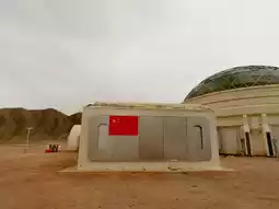 The vast red desert simulates the magnificent landscape of the Martian surface, allowing people to instantly travel to a distant interstellar journey. The towering simulated Mars buildings are scattered in the base, each carrying human beings' infinite reverie and desire to explore the unknown world.