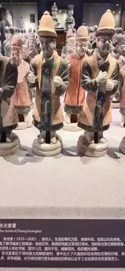 In an ancient stone tomb in Doupo Village, Taiyang Town, Jincheng, the pottery figurines of ceremonial guards unearthed from the tomb of Zhang Guangkui, the Right Councillor of Shandong during the Wanli period of the Ming Dynasty are still lifelike and exquisite, reflecting the prominent status of the tomb owner during his lifetime and the development of the exquisite handicraft manufacturing industry in ancient China. The painted glazed figurines unearthed from Zhang Guangkui's tomb are rich in colors and include daily life figurines, attendant figurines, servant figurines, housekeeper figurines, sedan chair bearer figurines, horse-leading figurines, ceremonial figurines, and performing arts figurines, which well reflect the living conditions of the people at that time.