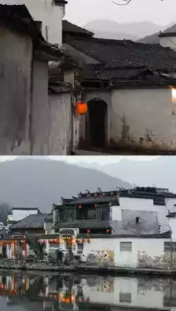 Nestled by mountains and water, simple and elegant. The Hui-style architecture with white walls and black tiles makes one feel as if they've traveled back to ancient times, experiencing the tranquility and beauty of seclusion.