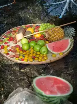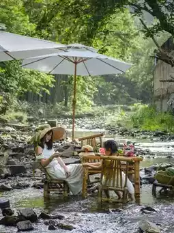 Water swings and bamboo tables and chairs are set directly in the creek! Swinging, sipping tea, snacking on sunflower seeds, and fanning yourself—it’s like being transported back to childhood by the riverside at grandma’s house!🍉