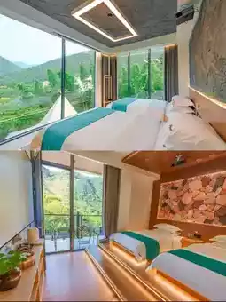 Every morning, when the first ray of sunlight shines through the curtains onto the bed, the view outside is like a gift carefully prepared by nature. The distant green mountains, the nearby clear waters, and the occasional birds flying by create a moving landscape painting. Here, time seems to slow down, and every day is so pleasant. 🍃