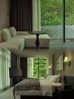 The homestay is surrounded by mountains and water, with a tranquil dark green view 🌿 Birds chirp, and trees cast cool shadows. The romance of the four seasons is tangible in this courtyard, and you can feel the gentleness of nature everywhere.