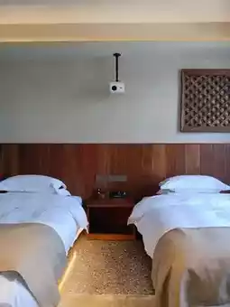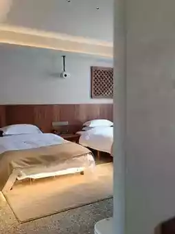 The room is elegantly furnished with a wooden bed, bamboo mats, and a complete set of celadon tea ware, showcasing meticulous craftsmanship in every detail. As night falls, the flickering candlelight sets the mood. Brew a pot of tea and watch the shadows of flowers swaying in the courtyard, instantly washing away the fatigue of travel.