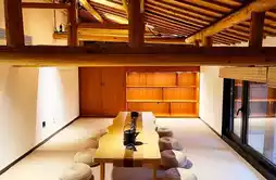 Planning a gathering with friends or family? The villa's tea lounge is the perfect spot. A long wooden table paired with woven cushions creates an ideal setting for brewing tea and sharing life’s moments, where time slows down and becomes delightfully serene.