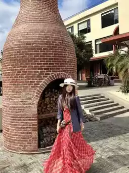 👉 Wear a plain long dress and take film photos in front of the red brick wall