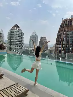 The hotel that boasts an infinity pool➕a prime river view, is just a stone's throw away from the Starlight Night Market! Definitely the top choice for beauties!