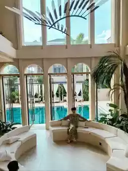 The swimming pool, the super photogenic white gauze leisure area, is great for taking pictures, recommended to wear swimsuits, dresses for photos, every shot is perfect