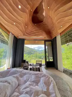 The next day, I woke up and asked Xiaodu to open the curtains, and it was like a Chinese ink painting slowly unfolding. There was some morning mist in the mountains, like a fairyland. I picked up my phone and saw a weather forecast from the butler. It was drizzling that day, but it soon cleared up.