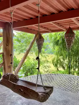 I love the swing and spring bed design. Sitting here quietly listening to the wind 🍃 and watching the clouds ☁️ with a book as a friend. There are many things to do here, or you can do nothing at all and just stay here all day. 👀 It's a real vacation paradise. 🏖