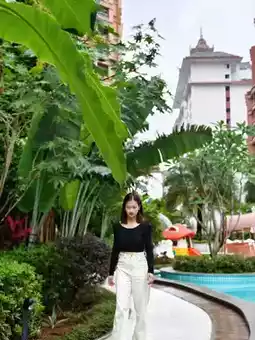 ✅️2500 square meters super large swimming pool, located on the third floor of the hotel, you can take photos of tropical plants and characteristic buildings at the same time, very photogenic, and there is a fountain show at night!