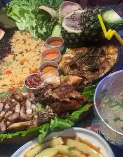 There are many special dishes, pineapple rice 🍍 chicken legs 🍗 grilled fish 🐟 absolutely delicious, crispy on the outside and tender on the inside 💯