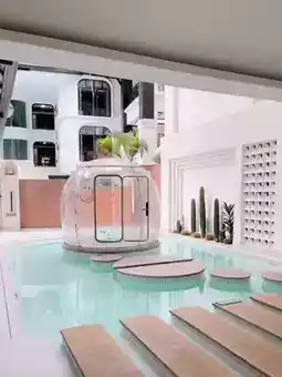 As soon as you enter the hotel, you'll be captivated by its large swimming pool. The sauna and steam room emit a faint fragrance, instantly relaxing you and driving away the day's fatigue. 💆♀️ In the heated bubble house children's pool, kids laugh and play to their heart's content. 👶 The adult pool is like a deep blue sapphire, inviting you to swim and feel the gentle power of the water. 🌊