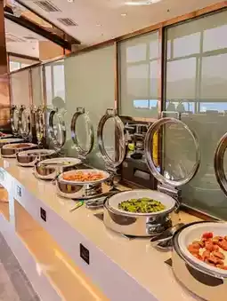 The breakfast buffet had a wide variety of dishes and fresh fruit. There was everything from bread and milk to hot dishes and porridge. Everything was delicious, and I ate until I was full.