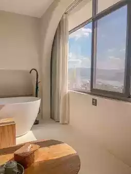 You can enjoy a cup of tea and the view from the large floor-to-ceiling window, and see the Golden Pagoda, Gaozhuang, and the Lancang River🛁🌅
