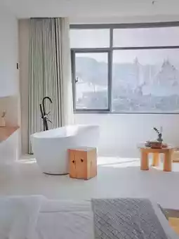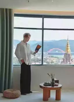 The milky white interior decoration, coupled with the direct sunlight from the floor-to-ceiling windows, is full of light and shadow. The simple and elegant decoration design, coupled with good lighting, makes the photo shoot feel like a sunny boy.