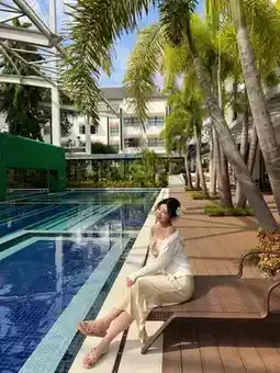 The sparkling national standard swimming pool under the sunlight is full of holiday atmosphere🧉