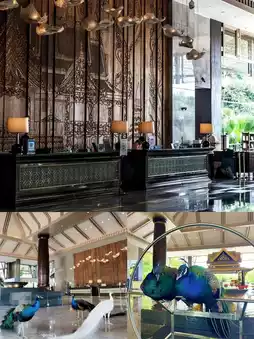 The hotel's swimming pool is my absolute favorite! The huge outdoor pool🏊🏻♀️ is surrounded by tropical plants, making swimming feel like gliding through a rainforest. There's also a dedicated children's🧒🏻 pool and a water park, offering a hands-free experience for parents with kids. The hotel even has a petting zoo where you can interact with rabbits🐇 and peacocks🦚 up close, which is super fun.