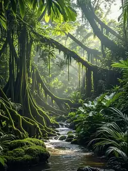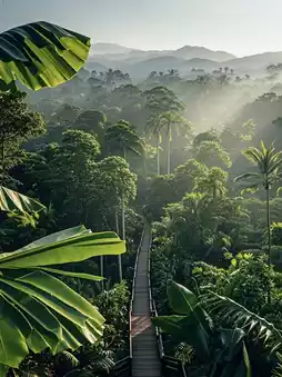 Every step on the moss carpet soaked in morning dew feels like the rainforest's heartbeat.