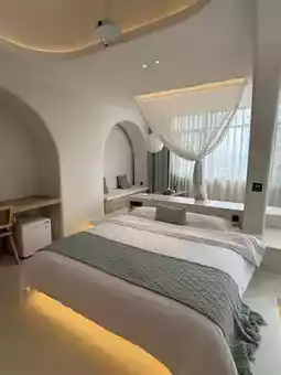 1️⃣ Bathtub room: Floor-to-ceiling windows + huge round bathtub, with swaying palm trees and Dai-style pointed roofs outside while you soak. Every casual shot looks like a scene from "Little Forest"! At night, you can apply face masks while watching the twinkling lights of the night market, maximum ambiance~