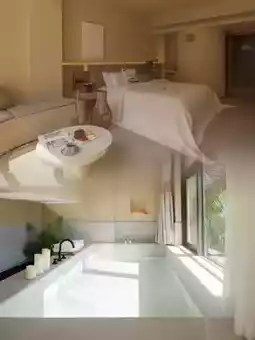 Pushing open the hotel door, the coolness of a tropical courtyard greets you. The central pool reflects palm tree shadows, hammocks sway in the breeze, and butterflies occasionally land on traveler's banana leaves. My "Banyan" family room was a delightful surprise: twin beds paired with a children's tent, floor-to-ceiling windows bringing courtyard greenery indoors, and my son watching squirrels in the trees every morning. Smart home systems are discreetly integrated into natural wood textures—electric curtains open gradually with sunrise, and amenities include smart toilets and Dyson hair dryers. Most thoughtfully, mosquito patches and electric repellents are provided at the bedside—perfect for families with children.