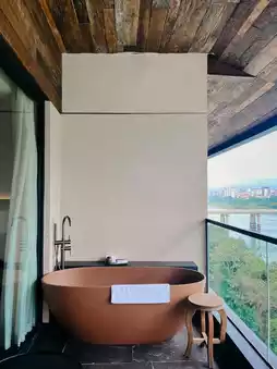 Private Soaking Tub Facing the River – Sunset Views While Bathing are Unreal 😭