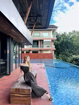 At dusk 🏊🏻 by the 42-meter infinity pool
