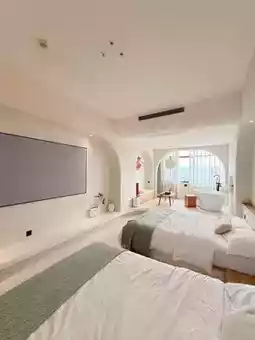 🏠The room design is so tasteful, featuring the minimalist style I adore. My river-view room had floor-to-ceiling windows with sparkling river views by day. At night, I soaked in the oversized bathtub while enjoying the city lights, then binge-watched shows on the big projector screen – pure bliss! The bedding was incredibly soft and cozy, ensuring a perfect night's sleep.