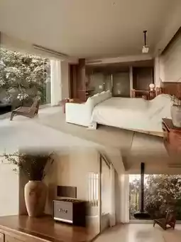 Detail lovers rejoice: solid wood furniture + branch art installations🌿, Marshall speakers + Dyson hairdryer, wild charm and luxury seamlessly connected! Even the lighting is set to “gentle and non-glare” mode~