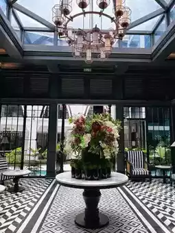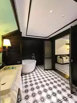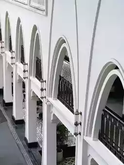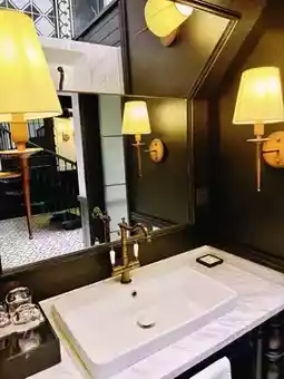 🕌 The hotel boasts unique architecture with white exterior walls and arched designs—simple yet elegant. The lobby features black vintage decor paired with exquisite chandeliers💡 and💐 floral arrangements, creating an atmosphere that's simply perfect. The rooms are packed with thoughtful details👍, from retro lighting fixtures to marble countertops, every corner exudes style.