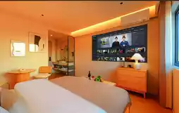 The room's large smart TV was a lifesaver. Snuggling under the covers to binge-watch variety shows at night brought me so much joy. The high-speed WiFi was excellent—streaming videos and uploading photos was a breeze. Some room types even feature a hidden gem: a lounge chair. Sitting there in the evening, you can watch the distant lights gradually illuminate while enjoying the gentle evening breeze—pure bliss.