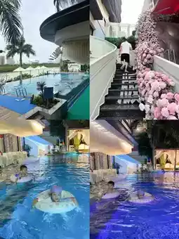 The infinity river-view pool is a must-try🏊♀️ Swimming with the kids at sunset, the water surface turns a warm golden color, and the little ones excitedly splash around. The scene is incredibly heartwarming!