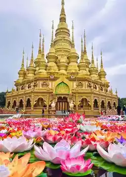 Mengle Great Buddha Temple offers more than just a visit to the temple—it includes various attractions, performances, bonfire parties, and water-splashing activities.