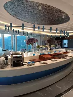 The buffet breakfast is served at the Paya Restaurant on the 49th floor, with an unbeatable 360° panoramic view. The breakfast includes everything from Chinese morning dishes, bread, and fruit to ethnic specialty dishes. The Yunnan-style rice noodles are a must-try breakfast item. Dining or having afternoon tea here offers a full view of the cityscape.