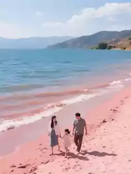 ✔️Fuxian Lake Red Sand Beach: Shoot after 4 PM for strong contrast between pink sand and blue sky