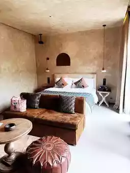 · Ingeniously crafted cave-style architecture paired with wooden furniture and handmade woven decorations