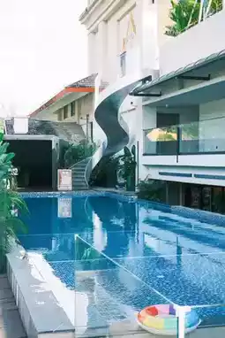 The rooftop outdoor pool is incredibly photogenic 📸, with blue sky and white clouds reflected as if floating in the air!