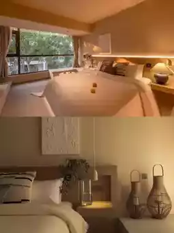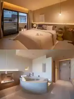 The brick red and beige tones are super photogenic, and the courtyard greenery plus the pool feel just like a desert oasis 🏜️ Be sure to take photos by the pool at night, the lighting and atmosphere are incredibly romantic~ The rooms feature smart home technology, with electric curtains and smart toilets that are really convenient. The bathroom’s dry and wet separation design is also very thoughtful.