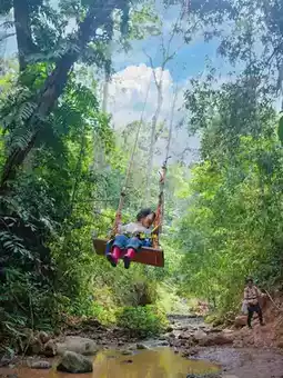 Baduo Route, 4km, rainforest paintings, vine swings, bamboo rafting, high-altitude swings, rainforest feast, tree descent—a unique experience