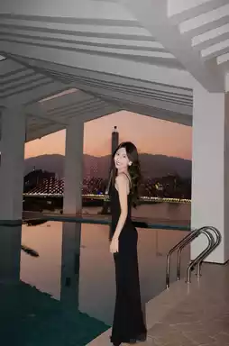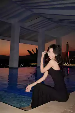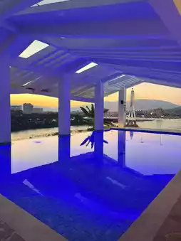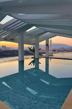 Soaking in the pool at dusk chasing the orange sea sunset 🌅