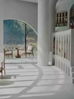 White terraced buildings on slopes create game-like scenery—effortless Instagram aesthetics!