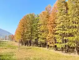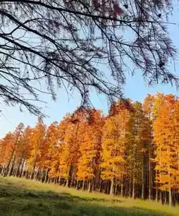 - The golden dawn redwoods in autumn🌲 against the blue sky are breathtaking