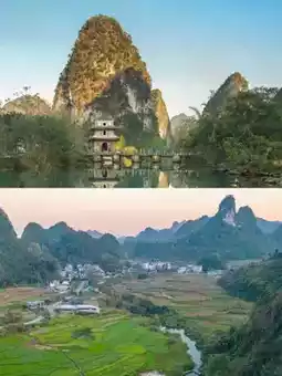 ▪️Quyang Lake: Karst mountains on the water, under the sunshine, the green mountains and clear waters are very beautiful, unfortunately, due to my schedule and weather reasons, I didn't go here, it's a regret